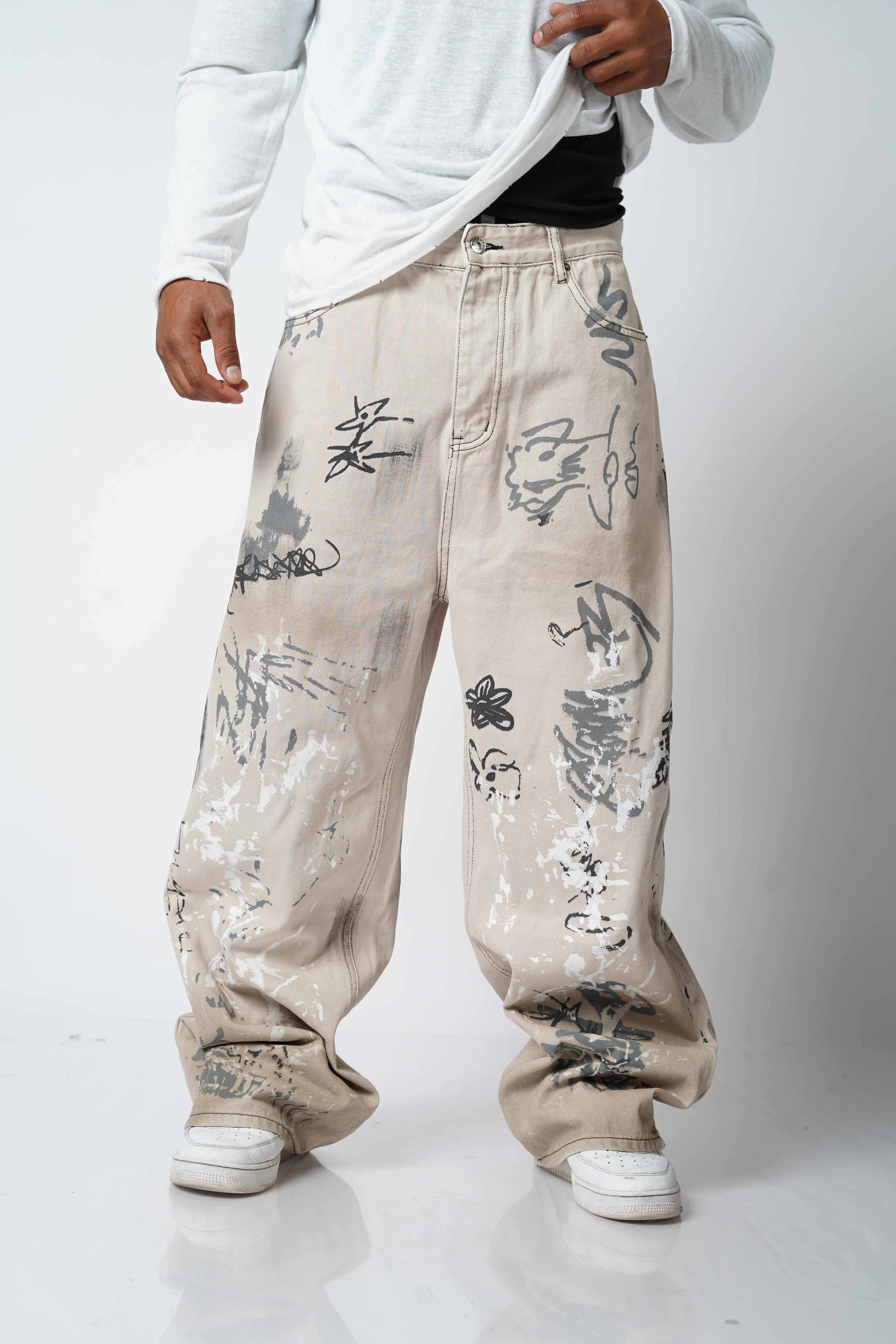 ג’ינס אובר סייז קצר עם הדפס כוכבים שחור ״STARLIGHY”